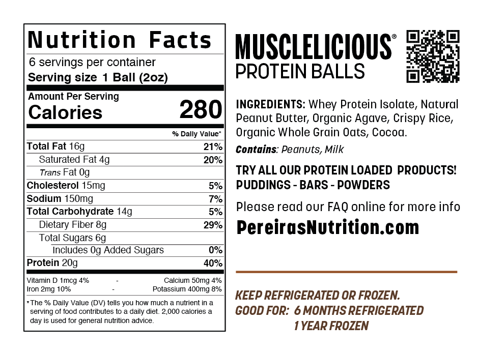 The perfect snack with 20 grams of high quality Whey Protein Isolate. This is a must have in everyone's daily diet. Tastes great and good for you, with just the right amount of protein and other nutrients, and reasonable calorie count. Hand made, rolled and packaged for your enjoyment. Show off your Balls to everyone before you eat one, but be sure to protect them from grabbers. :) Tasty and crunchy perfection in every bite.