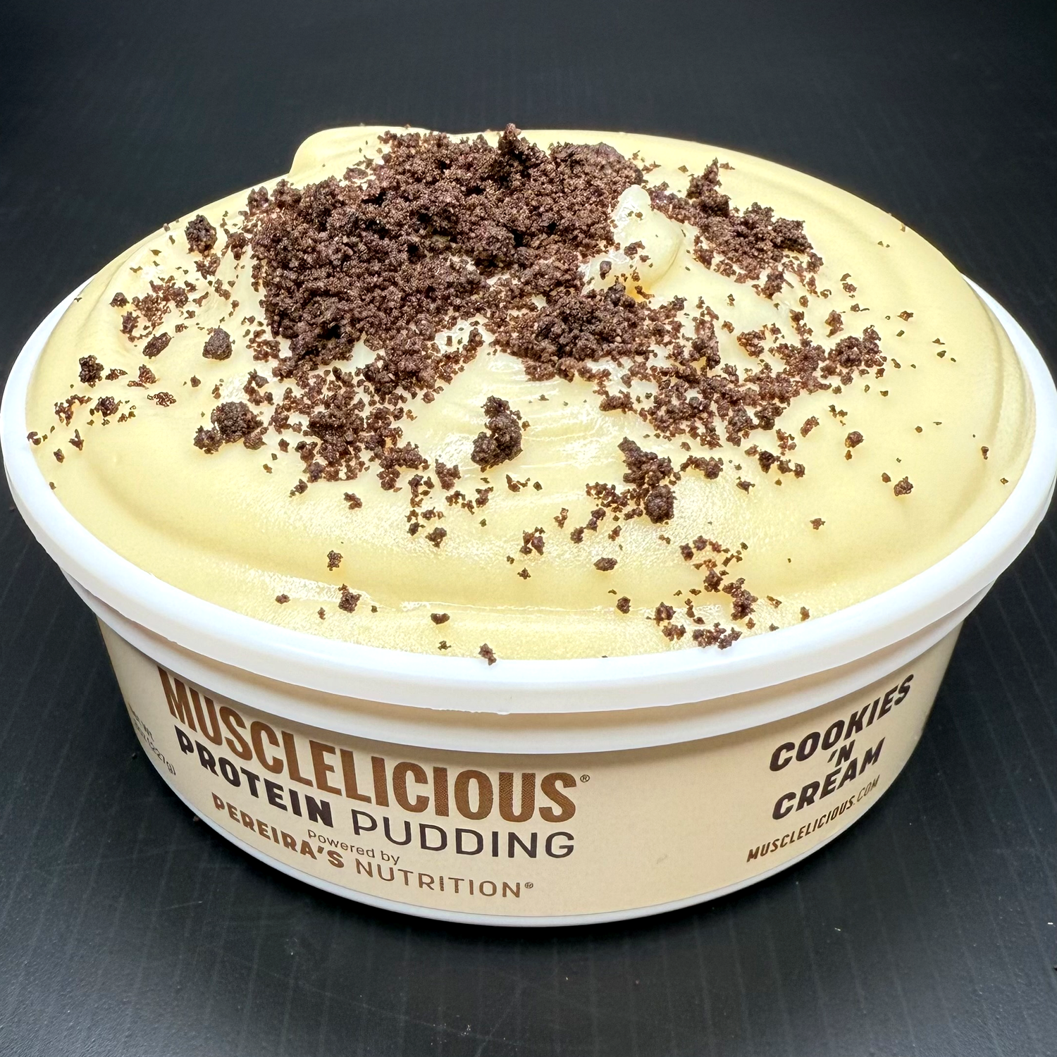 Indulge in the ultimate muscle-building delight with our Musclelicious Cookies n' Cream Protein Pudding—a creamy, dream-worthy treat that packs the nostalgic crunch of chocolate sandwich cookies into every spoonful. Picture rich, velvety pudding swirled with decadent cream and dotted with irresistible cookie fragments for that perfect textural twist, all without a hint of guilt. Loaded with 25g or 50g of premium whey protein per serving, it's your go-to powerhouse for fueling workouts, curbing cravings, or powering through busy days, sweetened solely with our Pure Sucralose for spot-on flavor minus the sugar crash. Musclelicious Cookies n’ Cream Protein Pudding now made with Gluten Free Oreo Cookie topping. Imagine the taste & aroma of the the quintessential, cream-filled sandwich cookie, in a super smooth pudding form. Top it with some cookie crumbles, and voila! You have the best protein-packed cookies and cream treat you’ll ever taste.